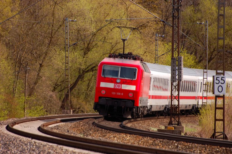 Am 12.05.08 durcheilt eine Lok der Baureihe 120 mit ihrem IC Muldenstein Richtung Berlin.