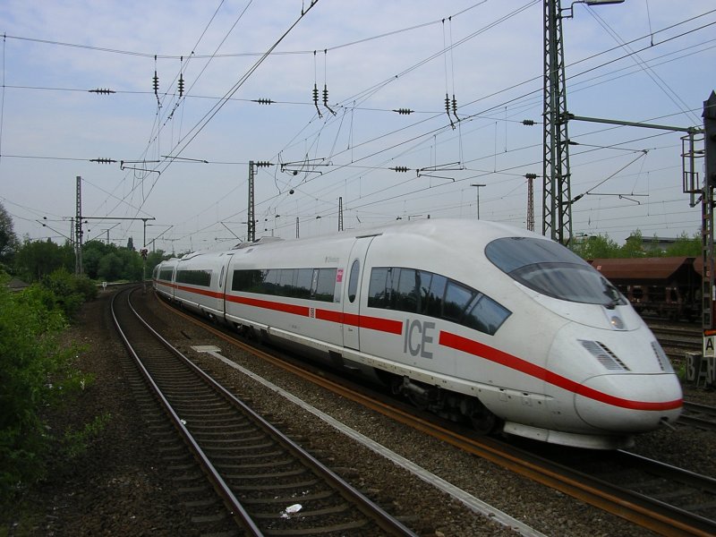 ICE 3 "Duisburg" ,voraus Steuerwagen 403 019-3 von München nach Dortmund Hbf. in der Ehrenfelder Kurve, kurz vor Bochum Hbf.(15.05.2008)