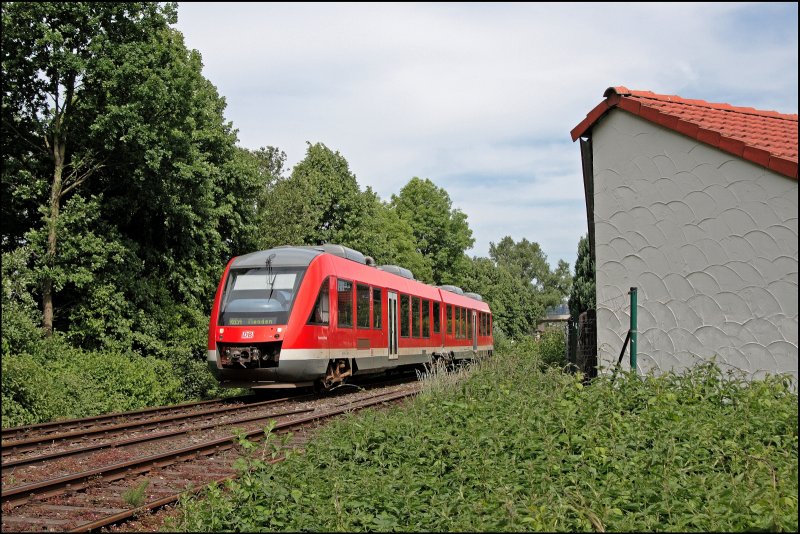 648 104 verlässt als RB54 (RB 29415) "Hönnetalbahn"), von Unna nach Menden(Sauerland), den Haltepunkt Bösperde. (24.05.2008)