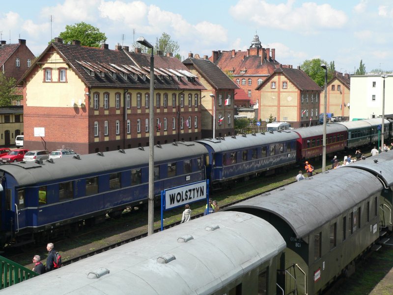 Polnische und deutsche Wagen im Bahnhof Wolsztyn. 3.5.2008