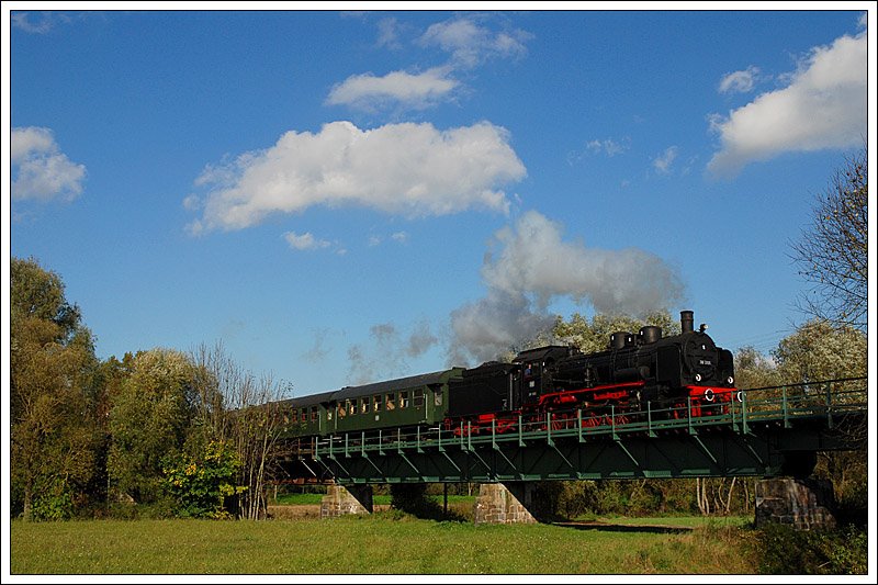 Die in 38 3101 umbezeichnete ÖGEG Lok 638.1301 mit einem Fotopersonenzug von Sulzbach am Inn nach Mühldorf am 17.10.2008 bei der Querung der Rott kurz vor Pocking.