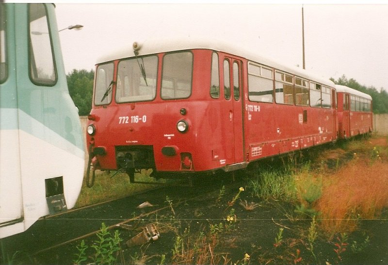 Die rote Ferkeltaxe 772 116 stande im Juli 1999 in Neustrelitz.