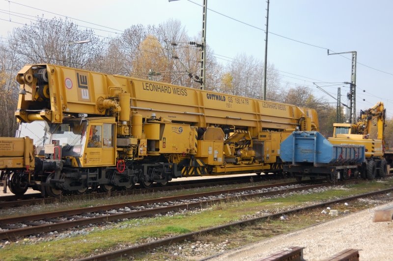 Oben am Ende der Geislinger Steige stand am Sonntag, den 2. November, dieser Gottwald Eisenbahnkran GS 150.14 TR der Fa. Leonhard Weiss in einem Auszugsgleis.