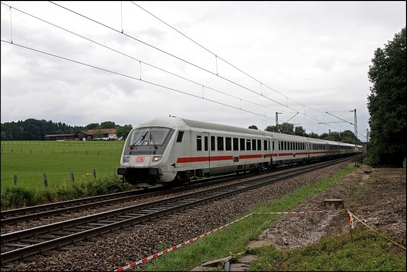 Steuerwagen vorraus ist der InterCity 2293, Saarbrücken Hbf - Salzburg Hbf, bei Vogl unterwegs. Nächster Stop ist Rosenheim. (09.07.2008)