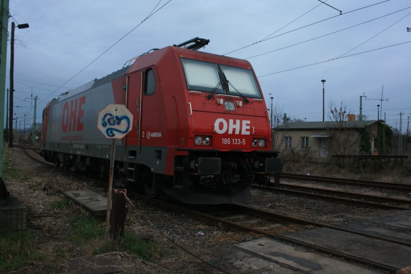OHE 186 133-5 am Abend des 14.11.2008 im Bahnhof Guben