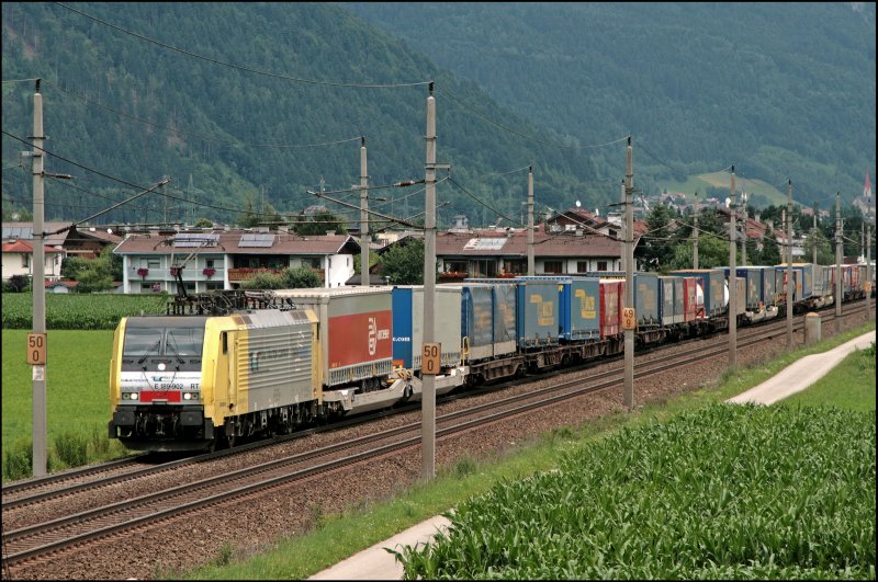 185 301 mit einem Containerzug in Richtung Hamburg; Billwerder-Moorfleet, 11.10.2008