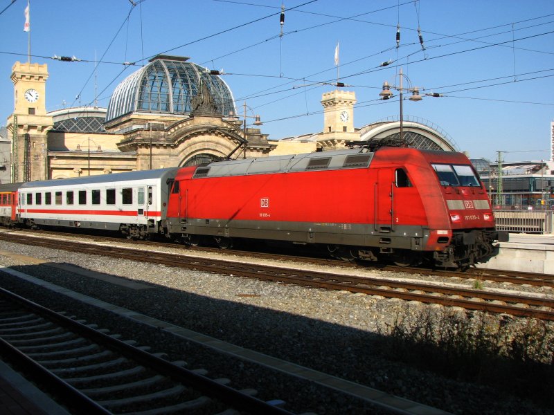 120 109 zieht einen IC(kein ICE-Erstzzzug) durch Bitterfeld Richtung Leipzig.