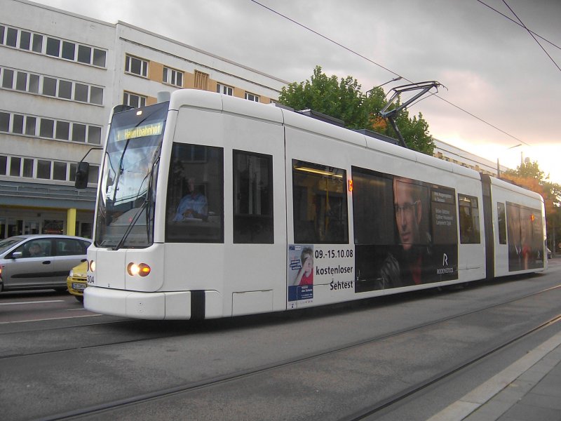 NGT 304, sonst komplett schwarz, wurde nun etwas aufgehellt. Am 02. Oktober 2008 steht er um 18:00 am Museum in Richtung Hauptbahnhof.
