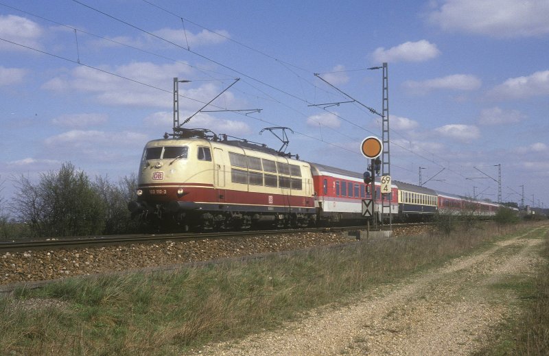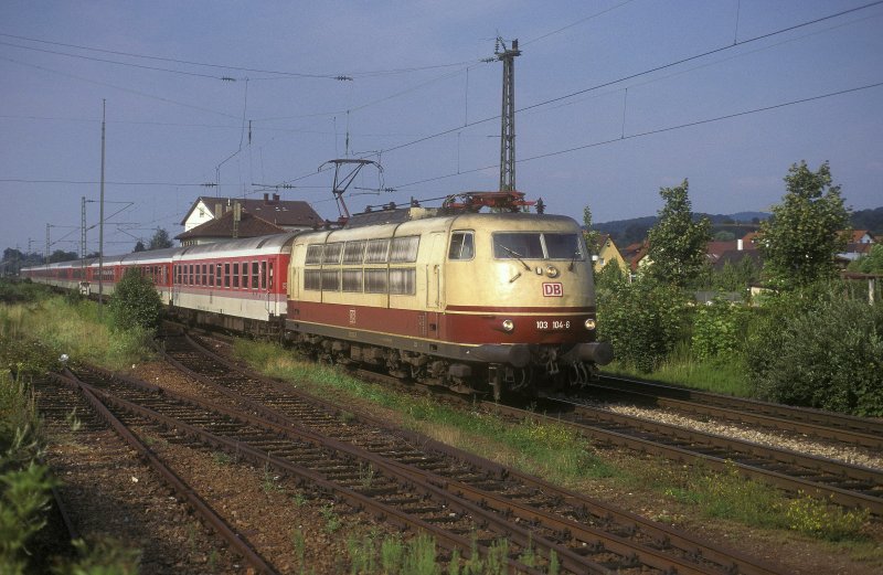 Im Mai 1999 kommt 143 010 mit dem Interregio aus Berlin Lichtenberg im Fährhafen Mukran an.Der Interregio bringt noch einen Kurswagen nach Malmö C.mit.