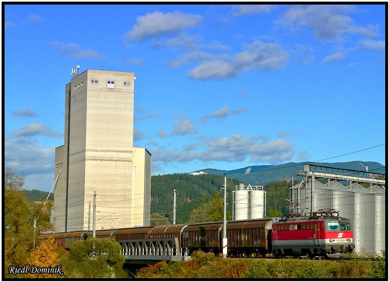 1042 018 überquert am 6 Oktober 08 die Ingeringbrücke nahe Knittelfeld mit dem 54507.