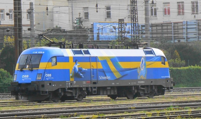 1116 029 EM Schweden rangiert im April 2008 zur Aufstellung zur ersten "EM-Tauri-Parade"/Präsentation in Wien-Penzig.