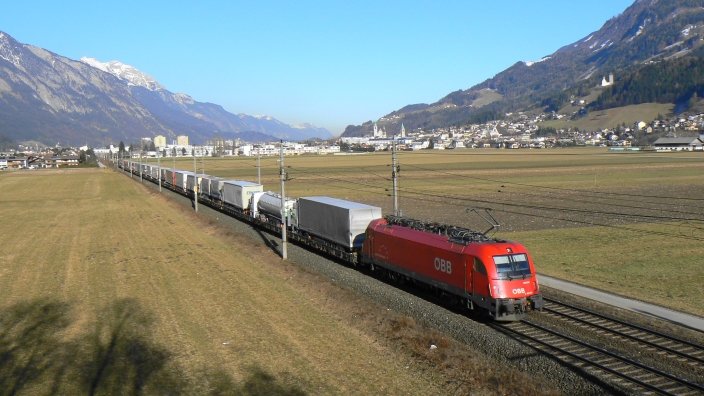 Dispo-Power im Inntal: ES64U2-037, E189 xxx und E189 004RT rollen mit dem "WINNER-EXPRESS" durch das Inntal nach München. Dort wird DB SCHENKER den Zug nach Wuppertal-Langerfeld bringen. (08.07.2008)