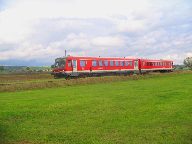 Ein Triebwagen der Baureihe 628 schleicht seinem Ziel Bad Rodach entgegen (Meeder, 3.10.08)