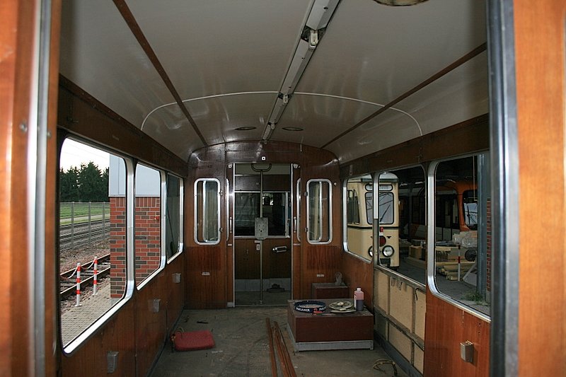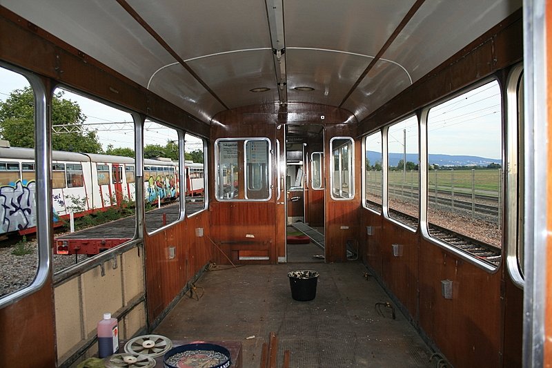 Beiwagen 181 von innen. Mittlerweile ist die Decke neu gestrichen und die Holzleisten sind poliert. Bald gehts unten weiter :)