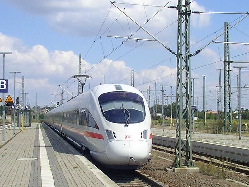 Ein ICE auf dem Weg Richtung München. Hier kurz vor der Einfahrt in Lutherstadt Wittenberg.