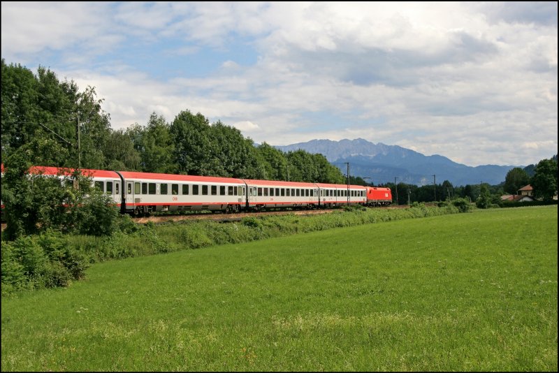 OIC 111 von München Hbf nach Klagenfurt Hbf war am 22.8.2008 mit 1016 035 bespannt. Die Aufnahme entstand kurz vor Bischofshofen.