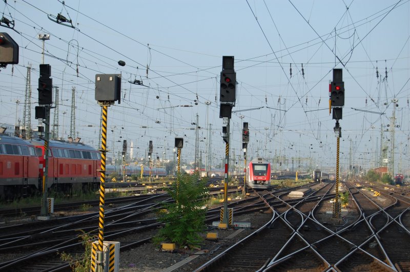 Ein ICE 1 kommt mit voller Garnitur zum Hauptbahnhof. Hier hätte ich ein gutes Tele gebraucht, um das Glänzen im Morgenlicht des ICE festzuhalten