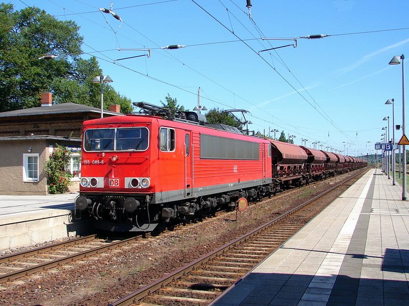 155 089-6 durchfährt mit einem Gz den Bhf Neustrelitz. 29.07.08