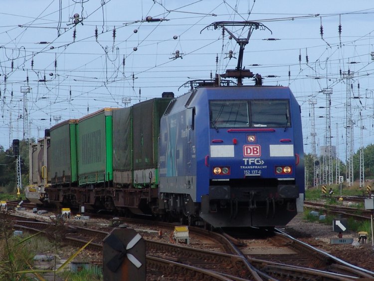 152 073 bringt am Nachmittag des 26.08.08 die von der Murrbahn umgeleitete Gaildorfer Übergabe nach Kornwestheim Rbf, aufgenommen an der Remsbahn (KBS 786) bei Goldshöfe.