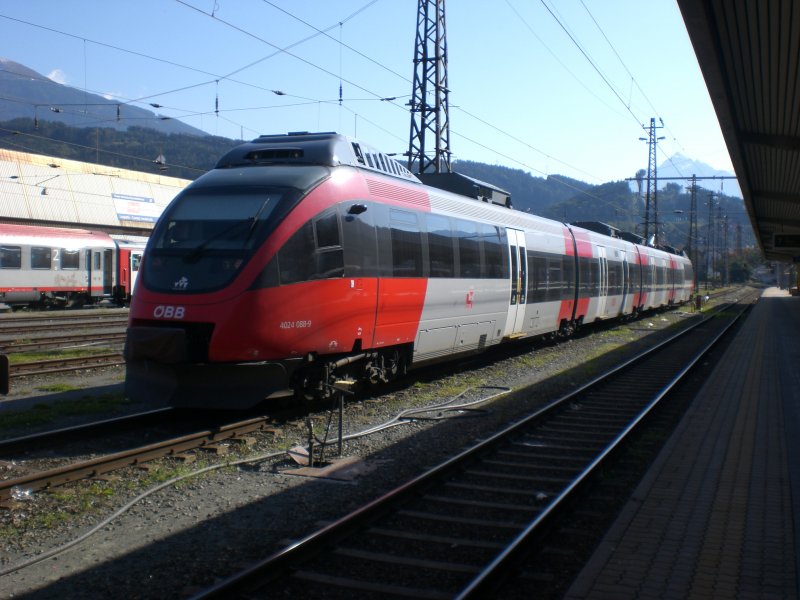 Österreichurlaub 2008 - ÖBB: Ein Triebwagen der Baureihe 4024 ist auf dem Weg in Richtung Innsbruck. Aufgenommen am 02.September 2008 in St.Jodok.
