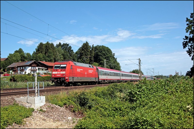 Bei Bernau am Chiemsee ist RE 30018 "München-Salzburg-Express" auf dem Weg in die Bayerische Landeshauptstadt. (06.07.2008)