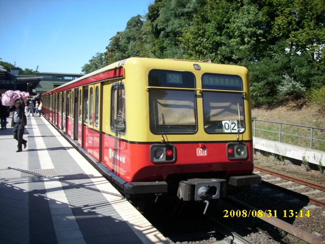 485 069 der Linie S9 nach Berlin Spandau am S-Bahnhof Berlin Messe Süd(Eichkamp) am 31.08.2008.