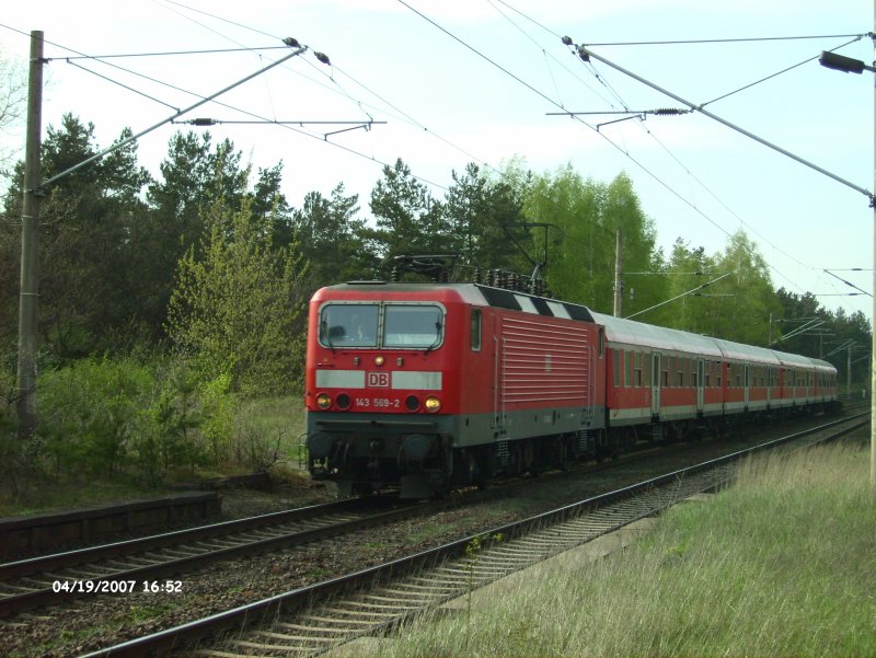 143 569 hat das Schild RB43 Falkenberg (Elster)drin,fährt aber als RB11 nach Cottbus kurz vor Eisenhüttenstadt.19.04.07