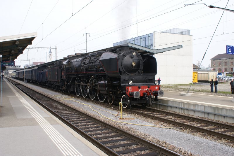 Der Extrazug des Vereins 241.A.65 fährt am 4.4.09 in Romanshorn ein.