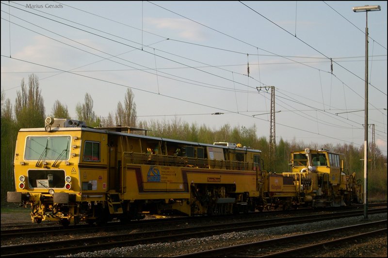 Eine Stopfmaschiene steht nach den Gleisbauarbeiten zwischen Rheydt und Baal nun abgestellt im Rheydter Gbf 10.4.2009