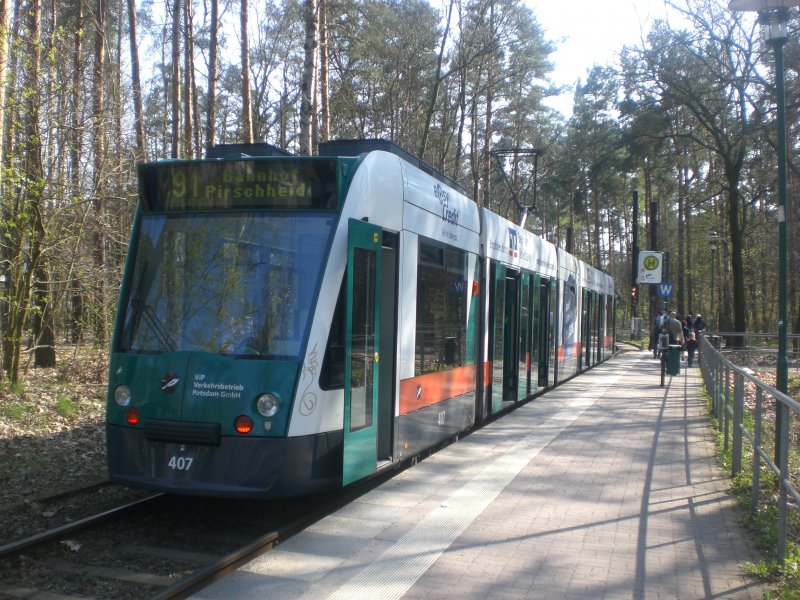 Potsdam: Straßenbahnlinie 91 nach Bahnhof Pirschheide am Bahnhof Rehbrücke.