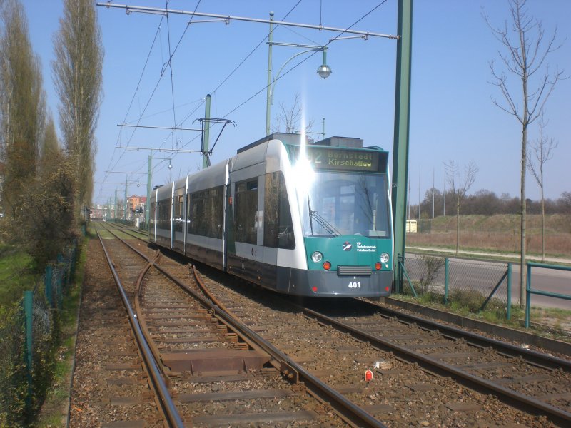 Potsdam: Straßenbahnlinie 92 nach Bornstedt Kirschallee an der Haltestelle Kirchsteigfeld Marie-Juchacz-Straße.