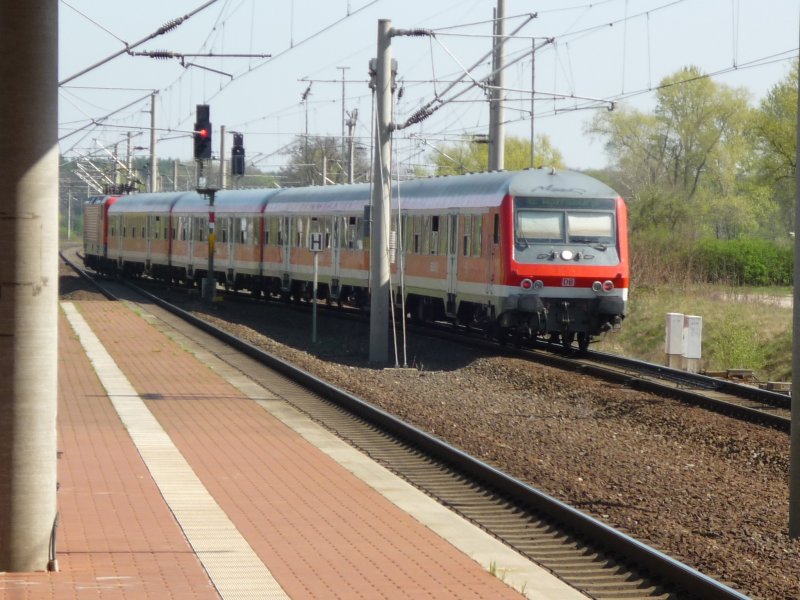Da kommt der RE 92076 (RE 2) nach Rathenow und rauscht auch schon wieder vorbei am 13.04. Mit einer Lok der BR 112.
