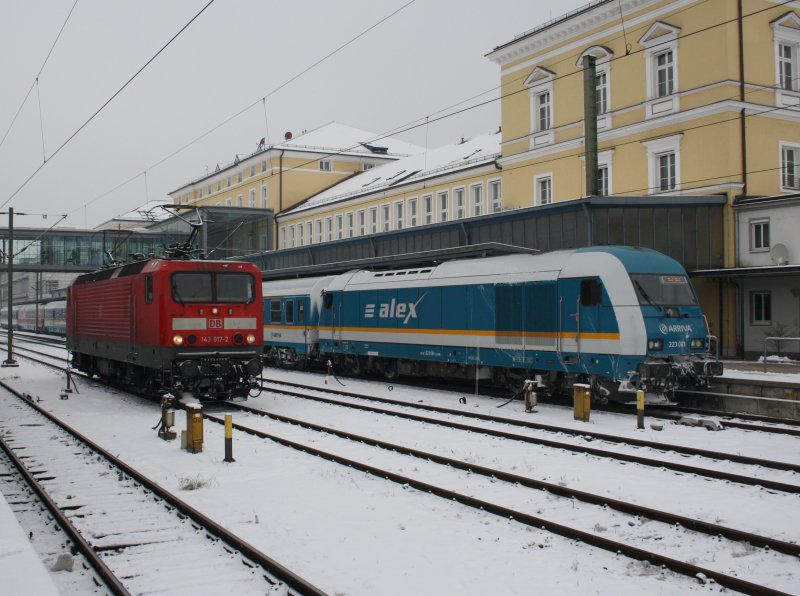 223 063 nach der Ankunft des ALEX in München Hbf aus Lindau am Abend des 6.4.2009