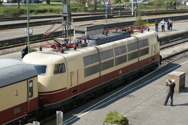 103184-8 wartet in Lindau mit dem Tee Bavaria der Tee - Classics auf die Rückfahrt nach Basel.