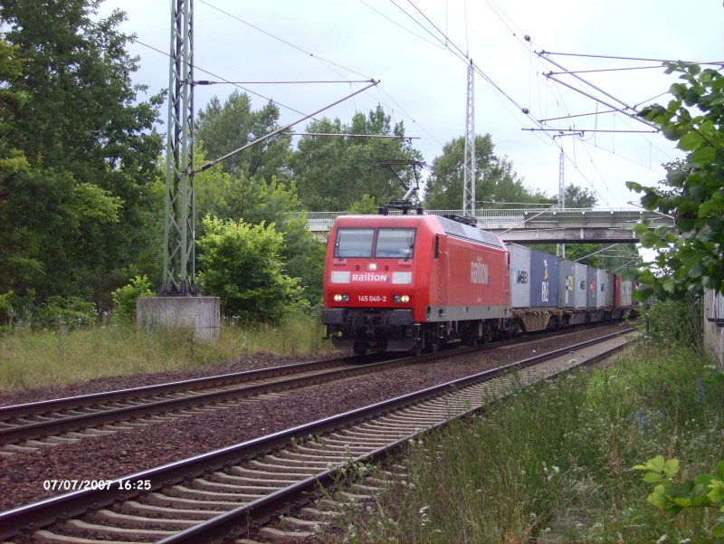 145 040 zieht ein Containerzug über den Südlichen Berliner Aussenring.07.07.07