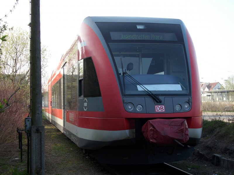 RE 33314 Binz-Stralsund gefahren am 18.April 2009 mit dem Flirt 429 028 am Haltepunkt Prora Ost.