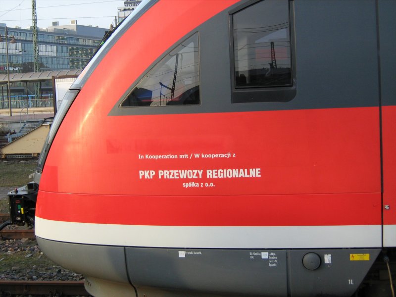 Am 21.03.2009 in Dresden Hauptbahnhof gesehen: Anschrift an 642 für den Verkehr nach Wroclaw (Breslau)