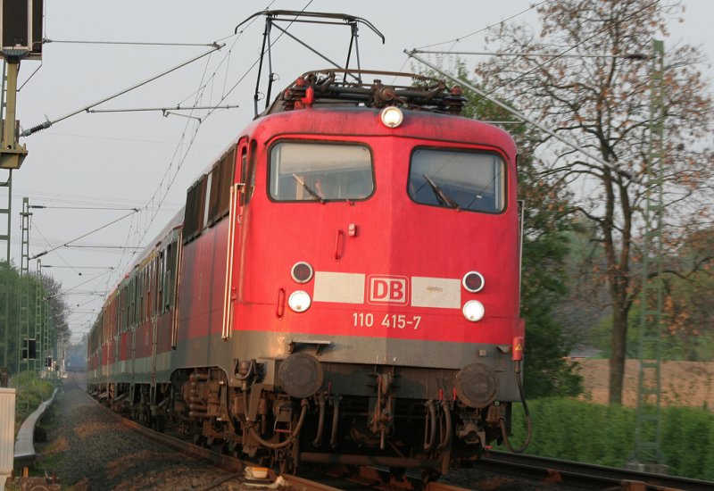 Die 110 415-7 zieht ihren RE4 Verstärker Richtung Geilenkirchen am 20.04.2009