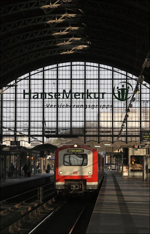 Ein 472er hat als S21 nach Bergedorf die prächtige Bahnhofshalle des Bahnhofes Dammtor erreicht.
