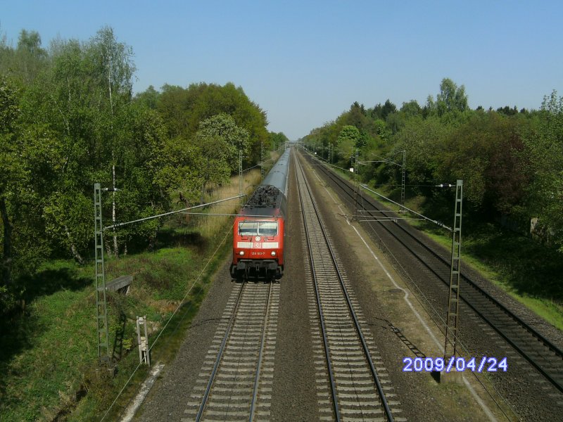 101 083 mit einem IC aus Hamburg in Richtung Bremen bei Tostedt am 25. April 2009