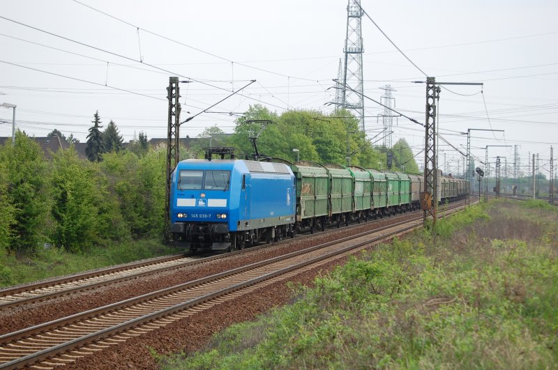 145 030-7 (PRESS) mit einem leeren Holzhackschnitzelzug am 18.4.2009 durch Ahlten -> Misburg und weiter nach Göttingen vermutlich