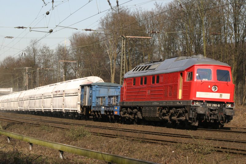 212 326 von 'Die-Lei Gmbh' zieht einen Bauzug durch Köln-Gremberg. Aufgenommen am 18/04/2009.
