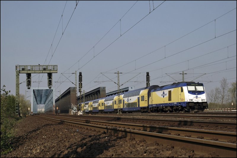 232 105-9 NBE kommt gerade über den Mittellandkanal bei Peine am 26.04.2009