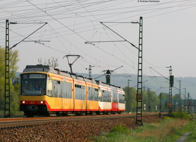 Eine S31 aus Freudenstadt fährt nach Rastatt. Fotografiert am 25. April 2009 bei Ottenau/Gaggenau.