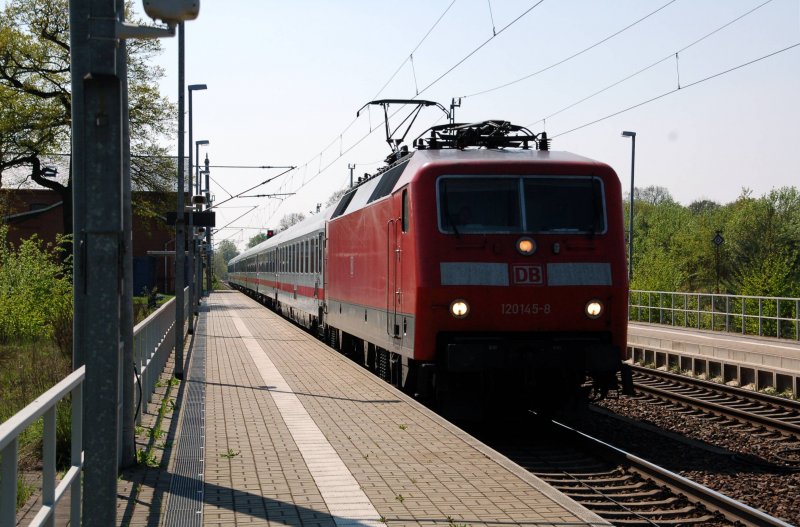 Der Gz blieb stehen und schon kam 120 145 mit dem IC durch Burgkemnitz Richtung Berlin gefahren.