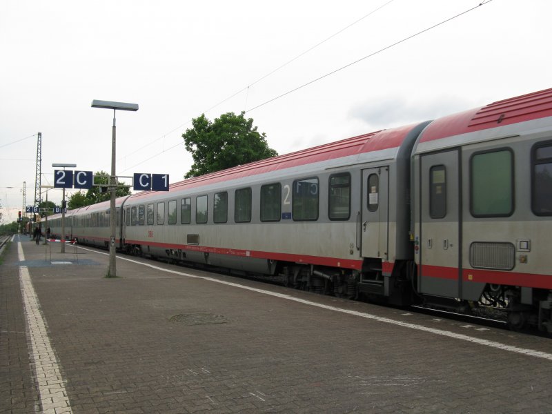 Leider sehr schwer zu erkennen! Der München Nürnberg Express nach Nürnberg Hbf in München Hbf, Langzeitbelichtung, 7.4.2009