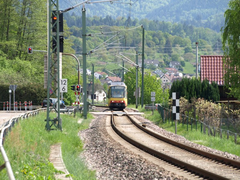 Ein Blick Richtung Rastatt vom Bahnhof Gaggenau aus gesehen. Die Murgtalbahn am 25. April 2009.