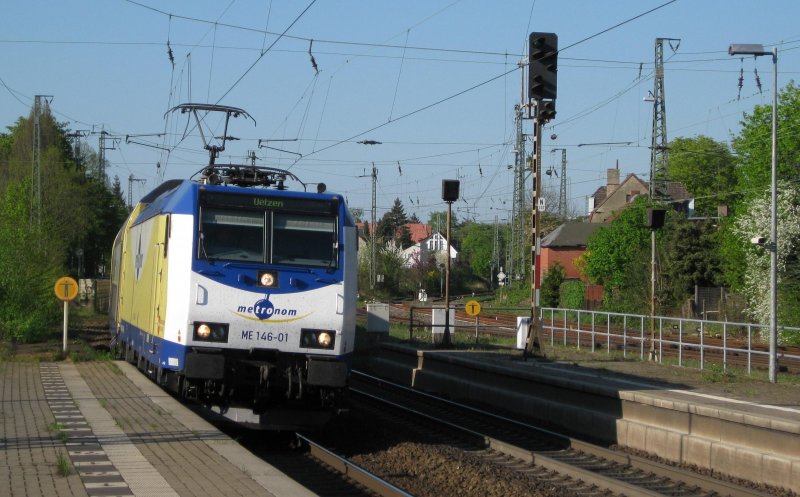 ME 146-01 bei der Einfahrt mit ME 80953 Hamburg Hbf - Uelzen am 18.04.09 in Lüneburg auf Gl. 1.