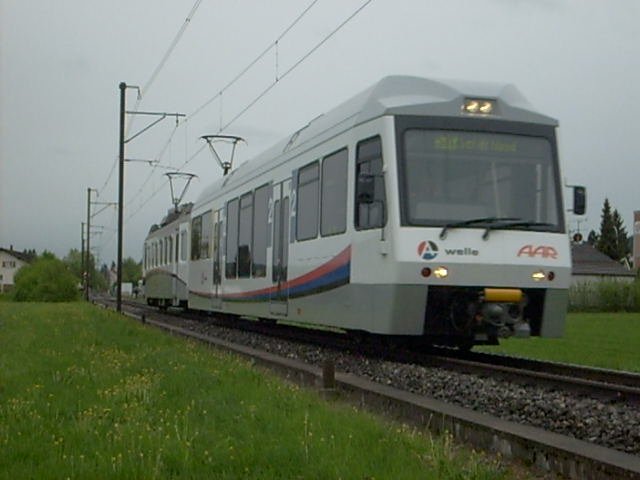 Neuer Steuerwagen mit dem Be 4/4 27 (teilumgebaut). Reinach, 28.4.09