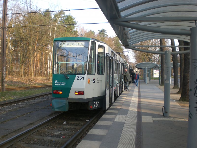Potsdam: Straßenbahnlinie 91 nach Bahnhof Pirschheide an der Haltestelle Potsdam-Süd Waldstraße/Horstweg.